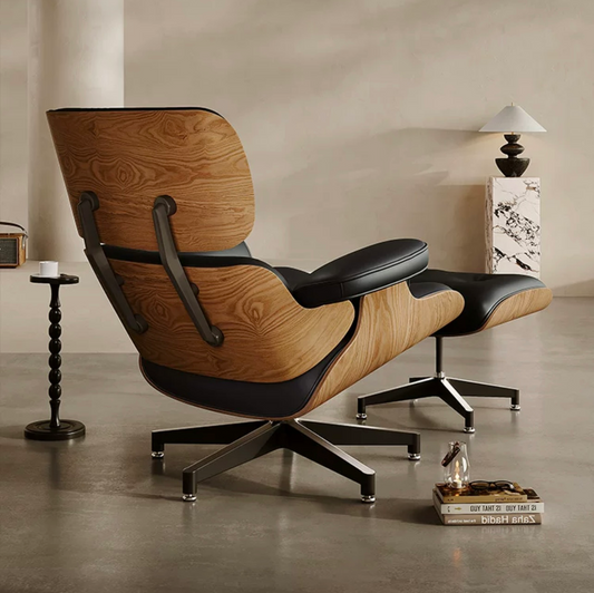 Large Version Genuine Leather Lounge Chair Club Seat Armchair Ottoman 8 Layer Plywood Frame Living Room Furniture
